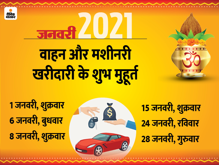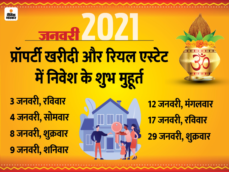 जनवरी में प्रॉपर्टी खरीदारी और रियल एस्टेट में निवेश के लिए 7 शुभ मुहूर्त हैं। वाहन और मशीनरी की खरीदी के लिए 6 दिन शुभ रहेंगे। वहीं, सगाई के लिए पंचांग में 20 मुहूर्त बताए गए हैं और शादी के लिए इस महीने सिर्फ 18 तारीख को ही लग्न मुहूर्त निकल रहा है। इनके अलावा तिथि-वार और ग्रह-नक्षत्रों से मिलकर 6 दिन शुभ संयोग बनेंगे। काशी के ज्योतिषाचार्य पं. गणेश मिश्र बताते हैं कि इनमें हर तरह की खरीदारी, लेन-देन, निवेश और नए कामों की शुरुआत की जा सकती है।